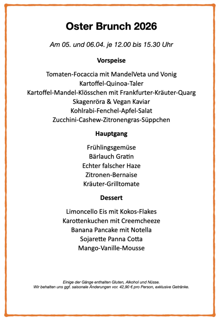 So, 05.04. und Mo, 06.04. Oster-Brunch, je 12-15 Uhr